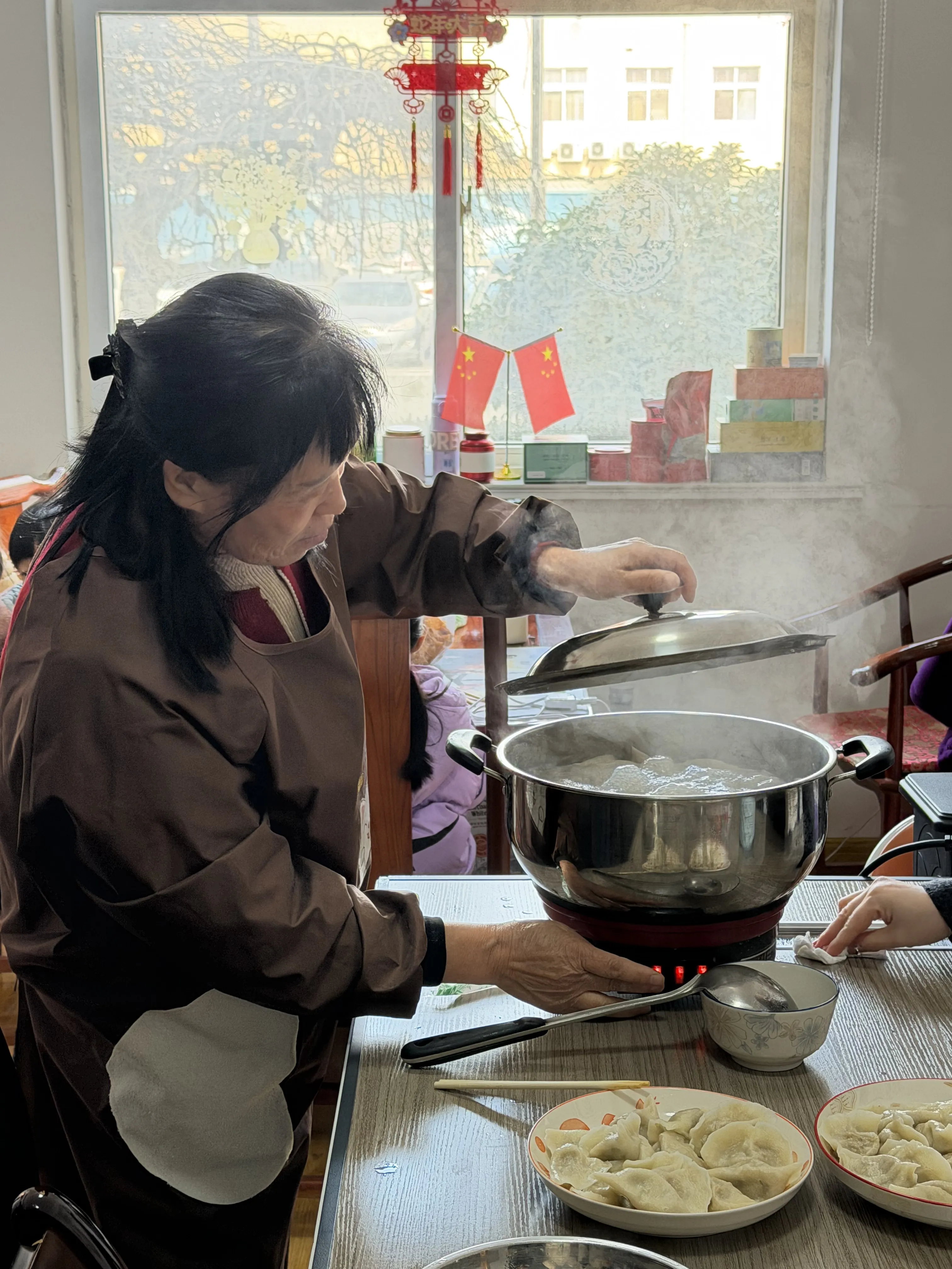 Hành động các thành viên trong gia đình quây quần bên nhau làm bánh bao tượng trưng cho sự đoàn kết, hợp tác và báo hiệu vận may trong những tháng sắp tới.