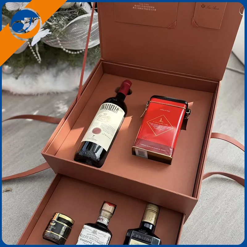 Khả năng tương thích đa chai: TheBao bì hộp rượuKhay bên trong mô-đun có thể chứa 1-6 chai, hỗ trợ các bộ rượu hỗn hợp và chai có hình dạng đặc biệt (như chai rượu sâm banh).